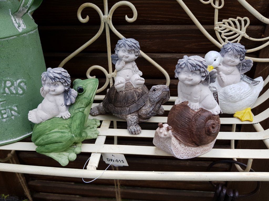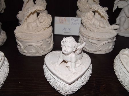 Engelkind sitzend auf Steinblock, Aussen- und Innenbereich.